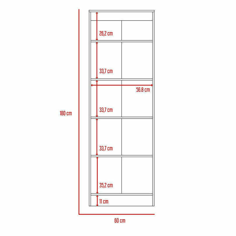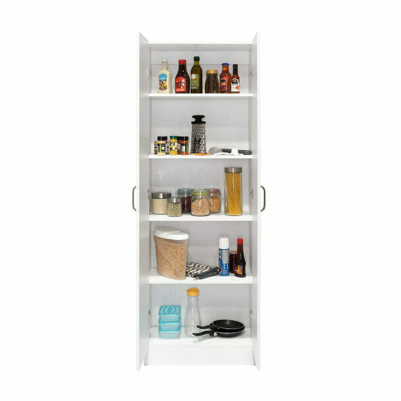 Alacena Multiusos, con 2 puertas con manija metálicas y cinco entrepaños.