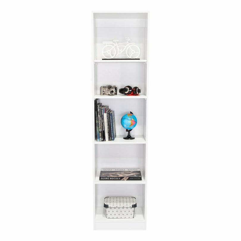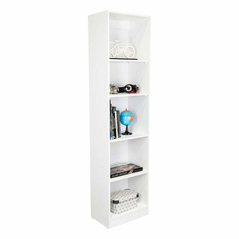 Biblioteca, con cinco entrepaños para ubicar libros y elementos decorativos.