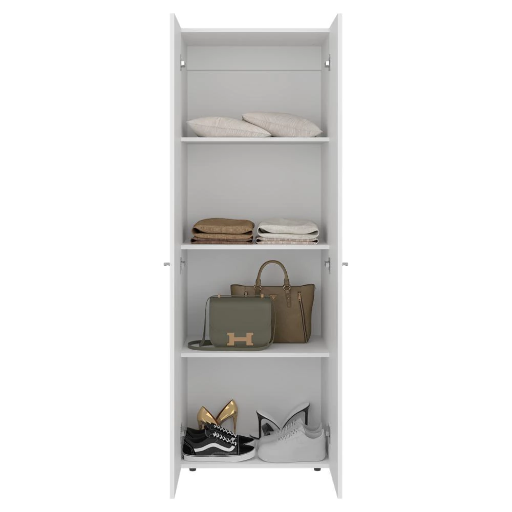 Closet, con 2 puertas abatibles, 4 entrepaños, con espacio para almacenar ropa y objetos, 3 botones en aluminio y es de facil instalación.