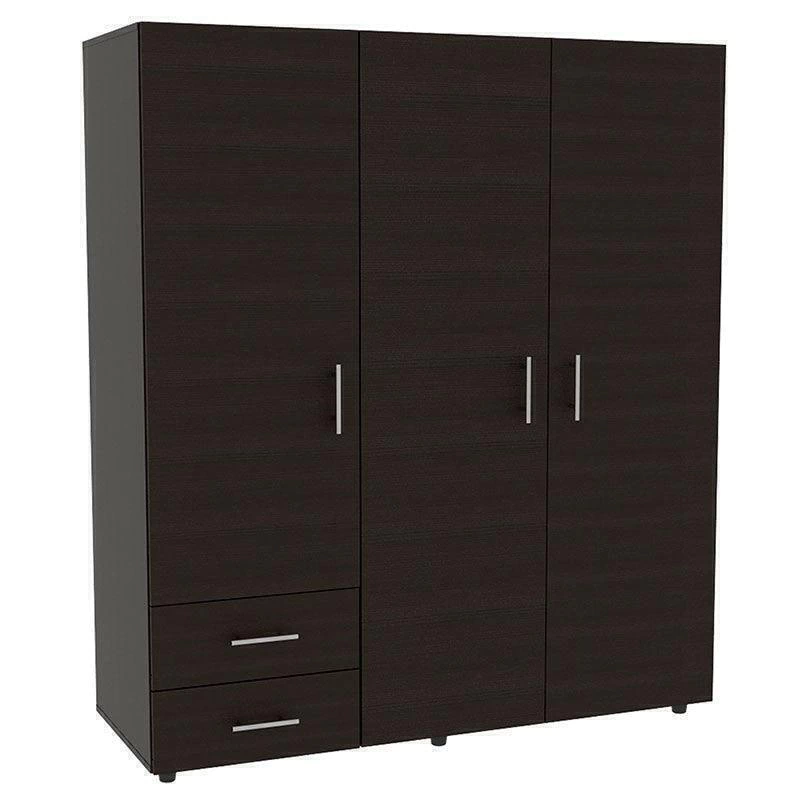 Closet, con 2 entrepaños para guardar y organizar la ropa, 3 puertas abatibles, 1 tubo cromado amplio para colgar ropa, 2 cajones organizadores multiusos, 1 Entrepaño diseñado para los zapatos, y manijas en acero inoxidable.