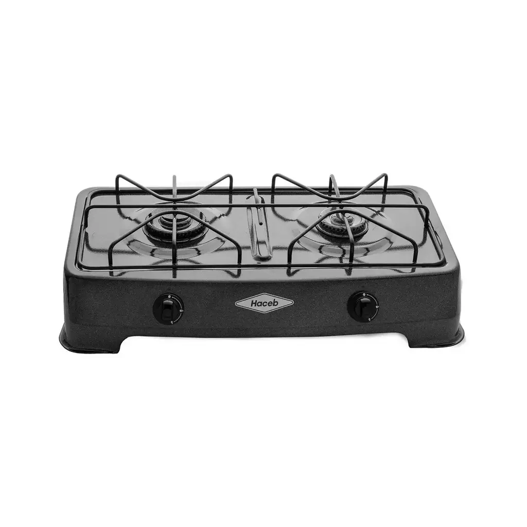 Cocineta a gas de 2 puestos, uno de mayor tamaño que agiliza el tiempo de cocción de todas tus recetas. Su mesa porcenalizada es antiadherente y de alta resistencia térmica, se acomoda fácilmente en cualquier espacio y es fácil de usar e instalar. Las parrillas cuentan con un número de apoyos óptimo que brindan estabilidad y seguridad.