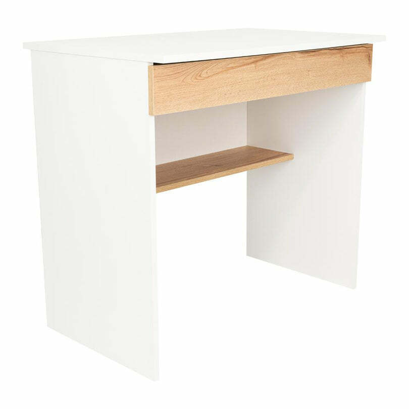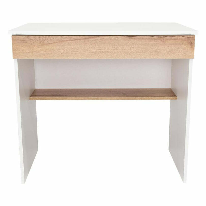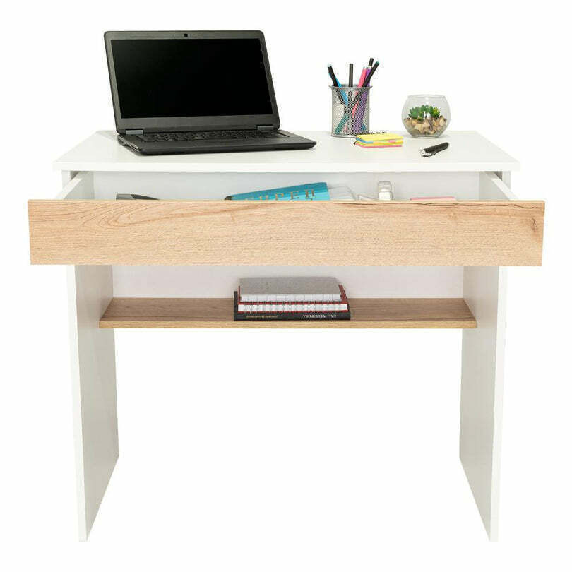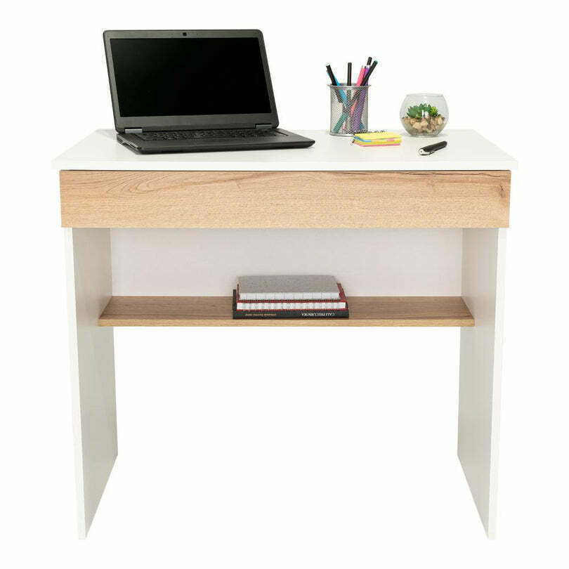 Escritorio con diseño moderno, amplia superficie de trabajo, entrepaño y cajon.