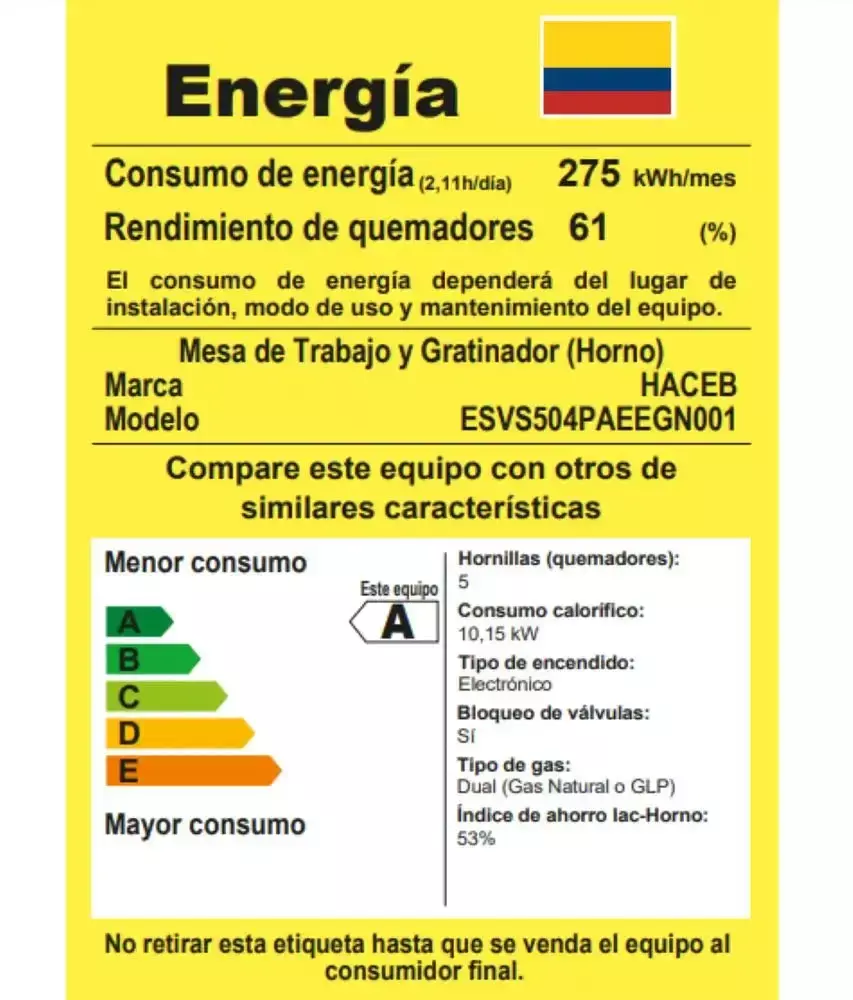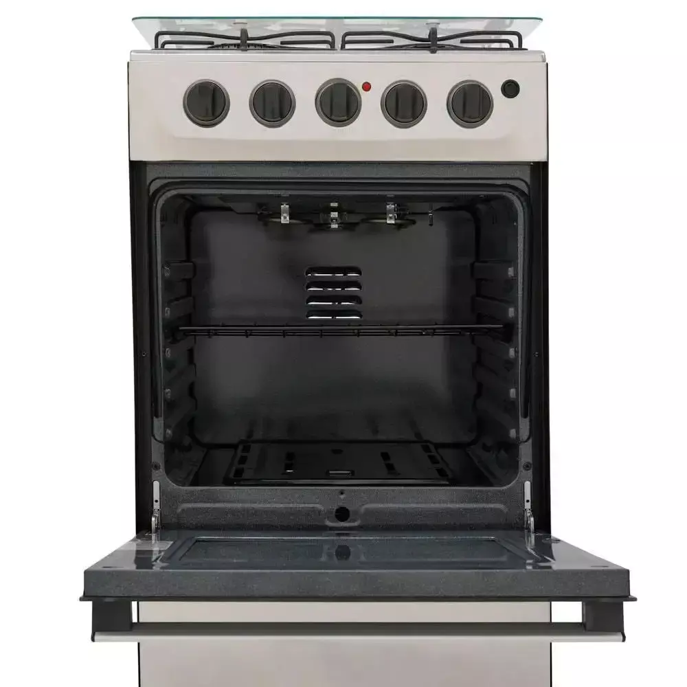Estufa Romero, Cocina ahora en menor tiempo con su fogón 35% más potente comparado con un quemador semi-rápido de Haceb - potencia 1.7 kW), evita fuga de gas en el horno bloqueando su paso en ausencia de llama (Termoseguridad) y parrillas en platina.