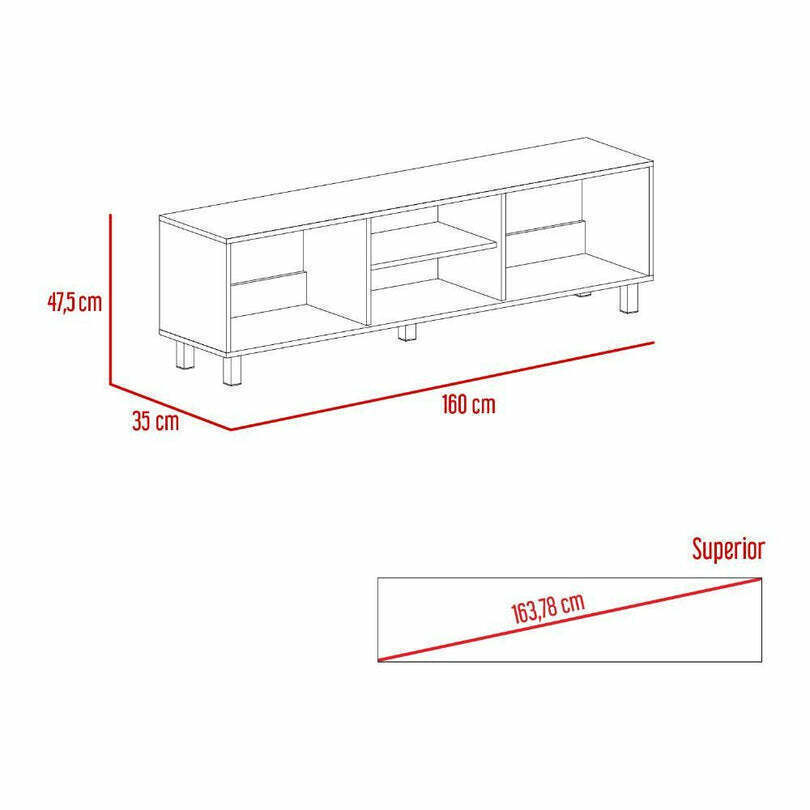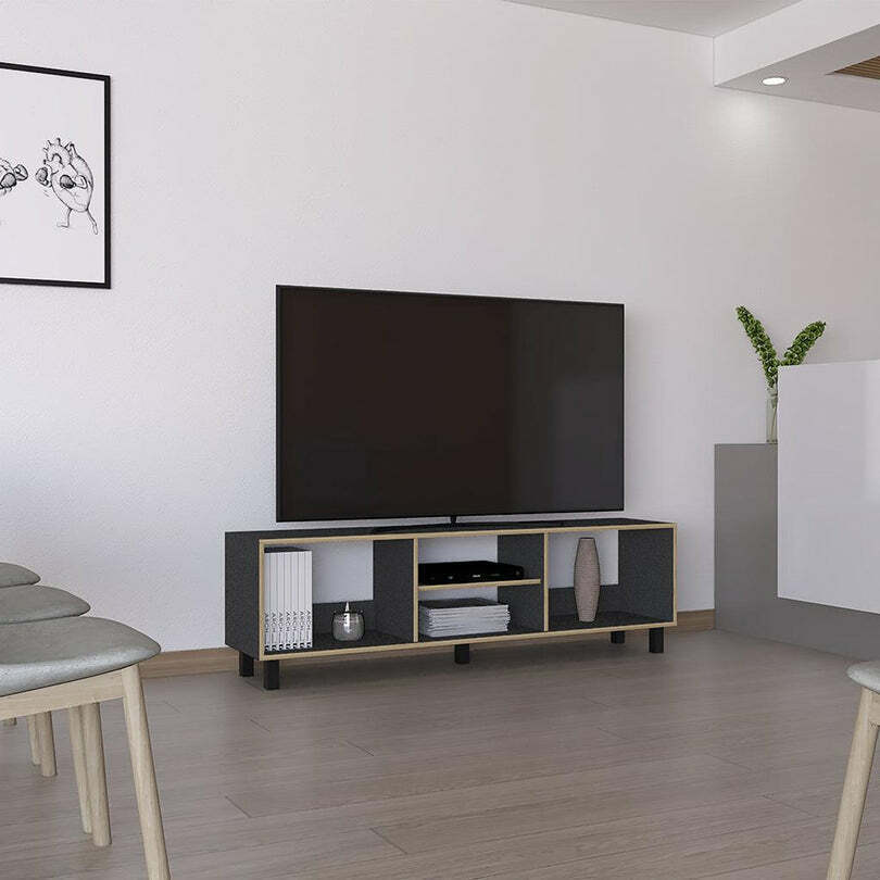 Mueble Multiusos, de 70". cuenta con un entrepaño y cuatro compartimentos para almacenar objetos.