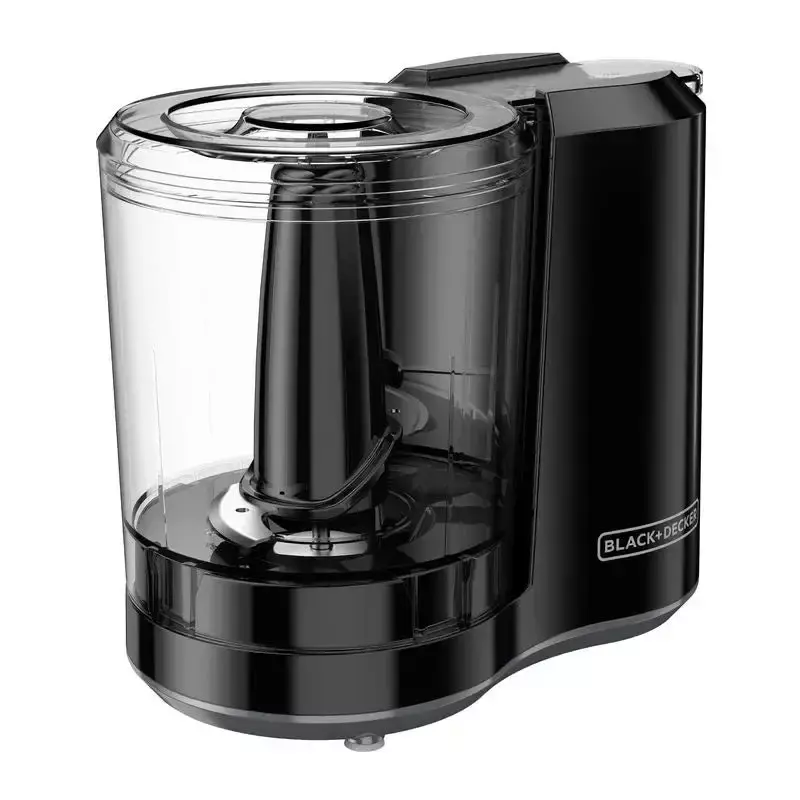 Procesador el control de pulso de un toque opera la cuchilla de dos niveles de acero inoxidable para picar con facilidad. Además, todas las piezas removibles son aptas para lavavajillas para una limpieza rápida y fácil, Capacidad de 3 tazas, 175 watts de potencia, Orificios de aceite, Cuchilla para picar de acero, inoxidable,