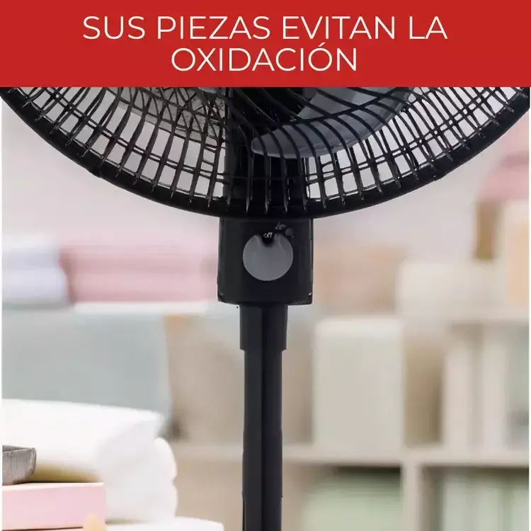 Ventilador, tecnología turbo power para mayor flujo de aire Inclinación vertical para una mejor difusión del aire Malla resistente para mayor seguridad lo que lo hace mas confiable cuenta con 3 velocidades, 70W de potencia, 4 Aspas.
