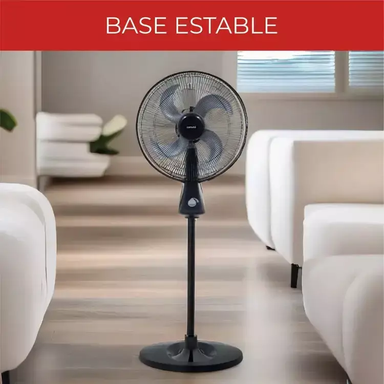 Ventilador, pedestal Negro 18", 70W y 4 aspas